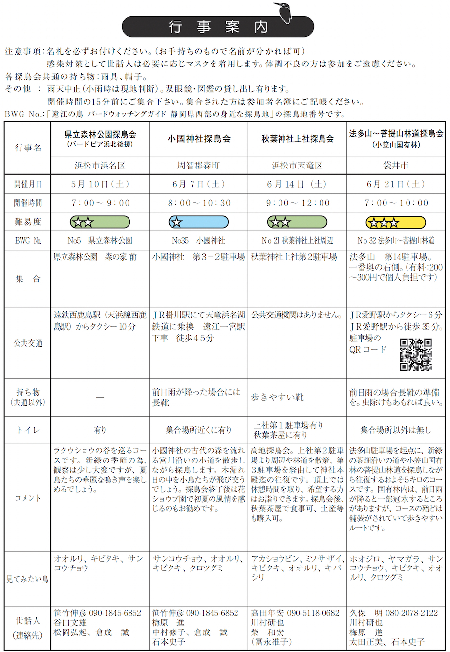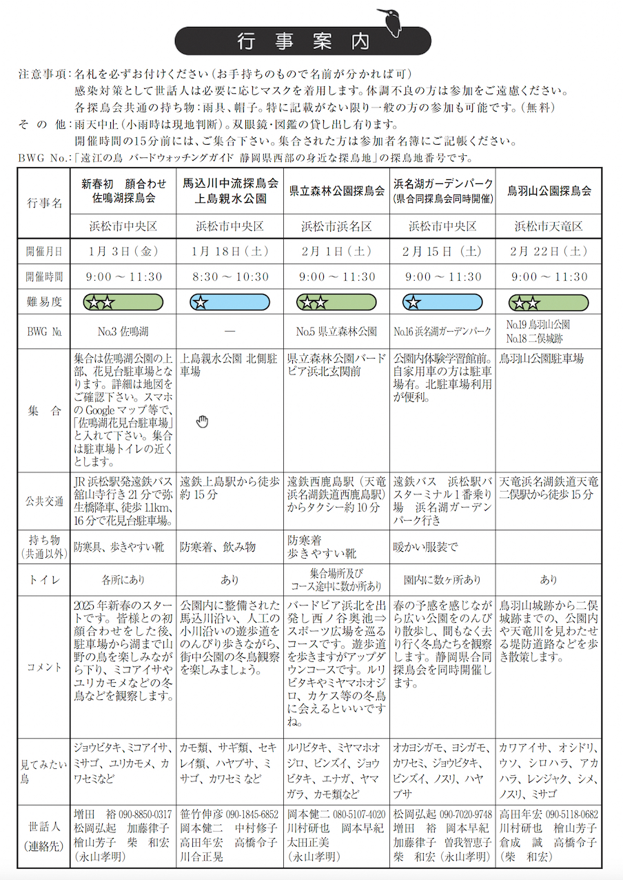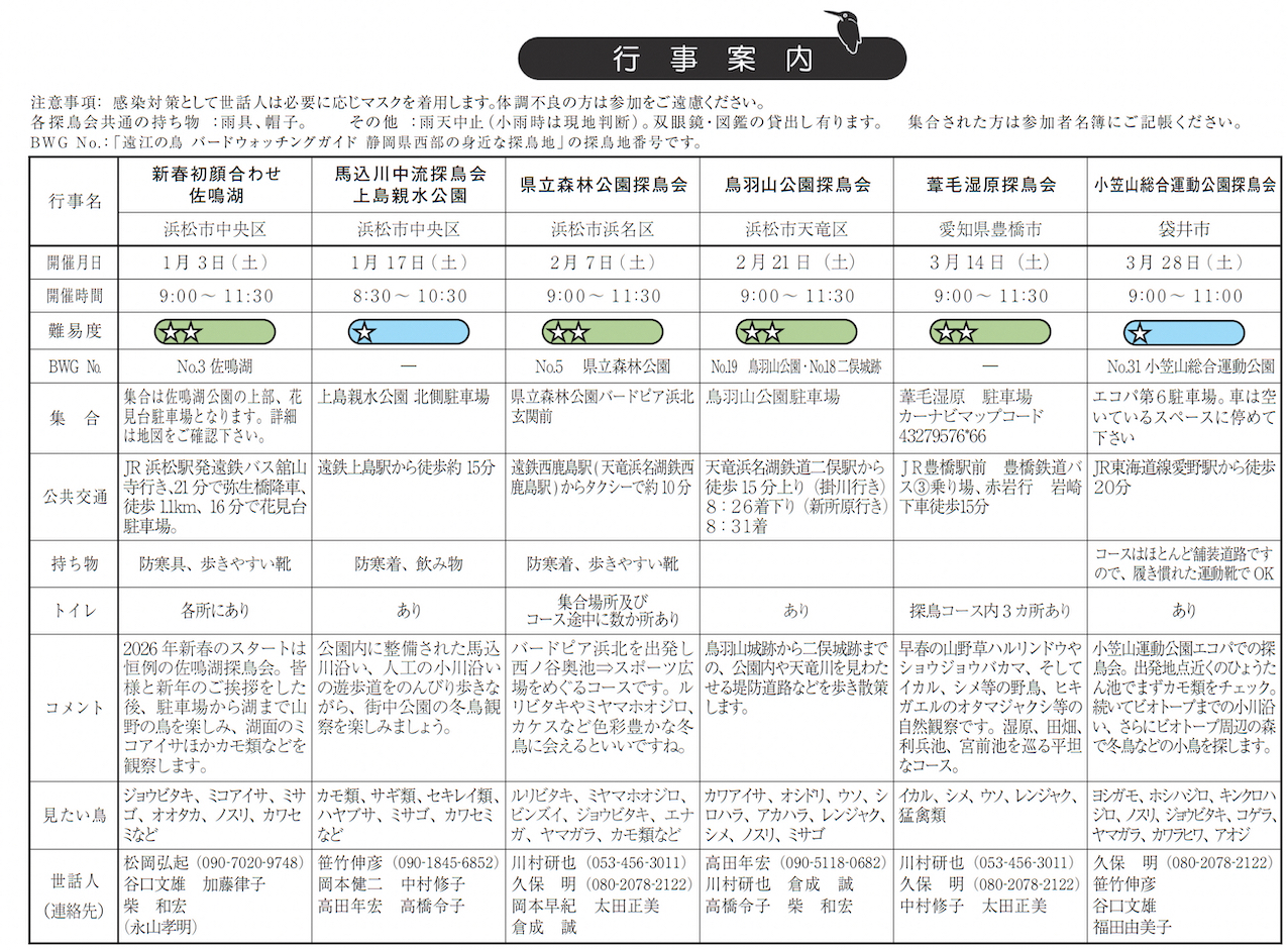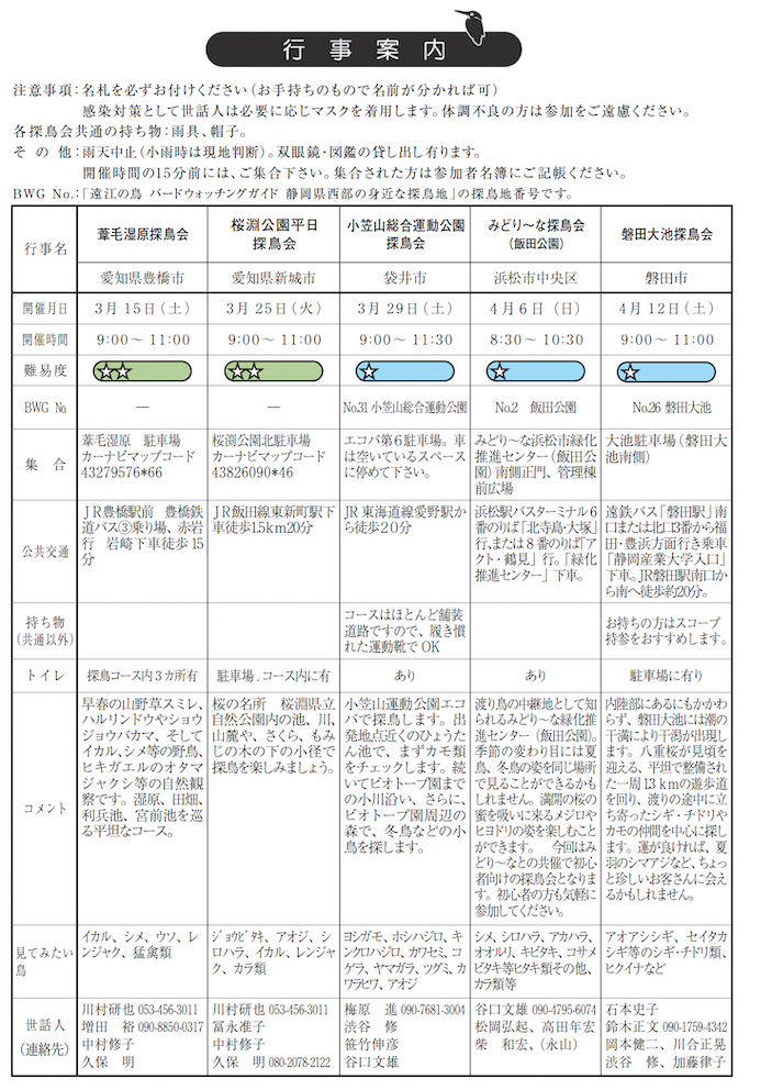 日本野鳥の会 遠江 行事予定 |