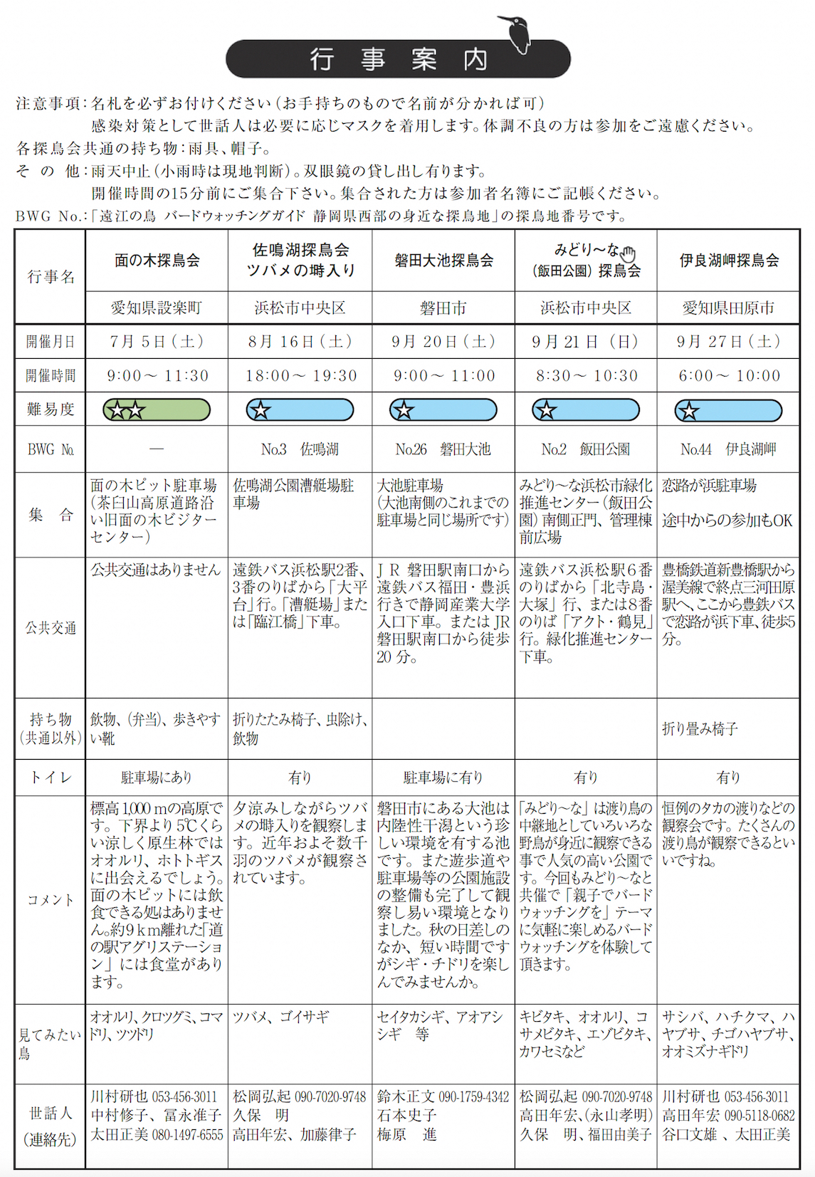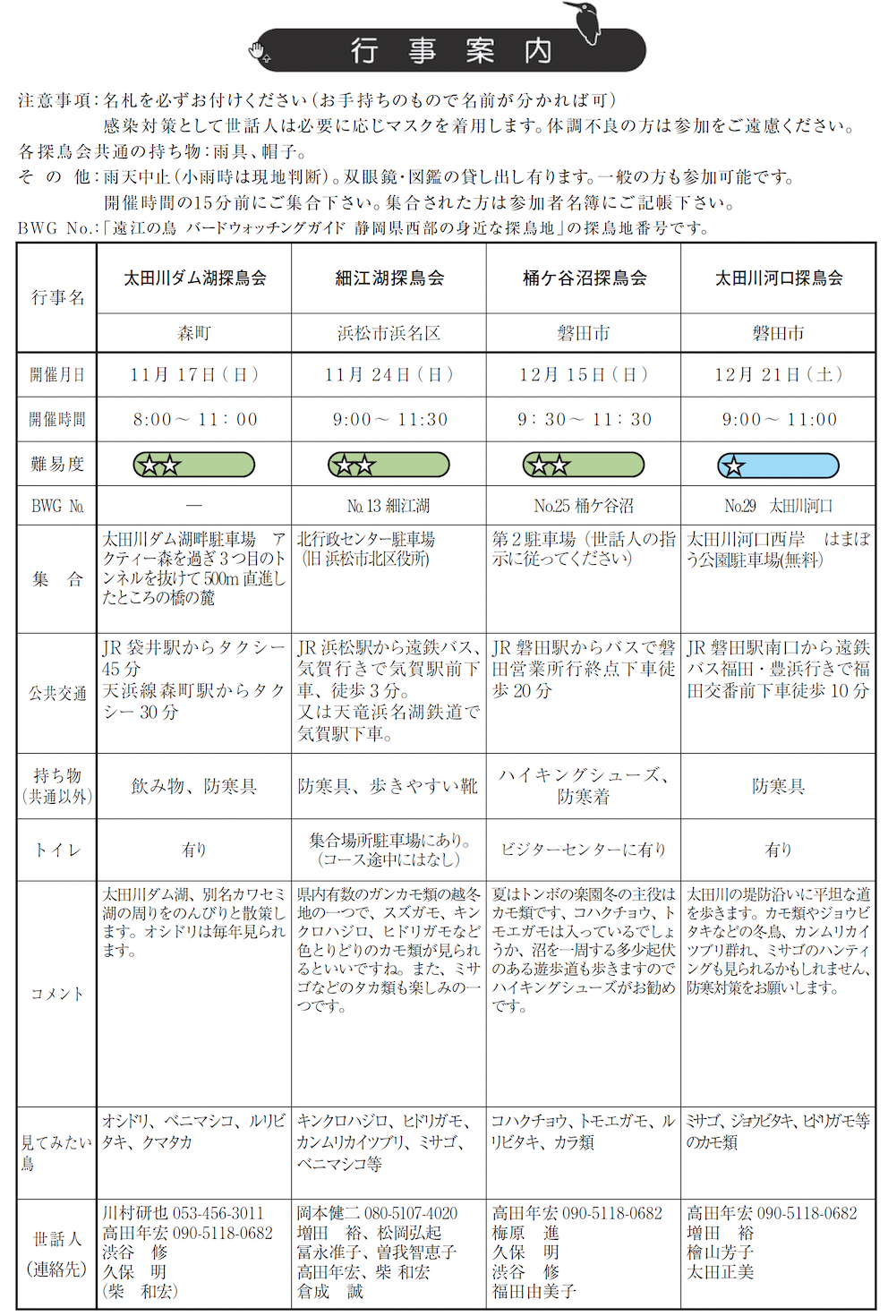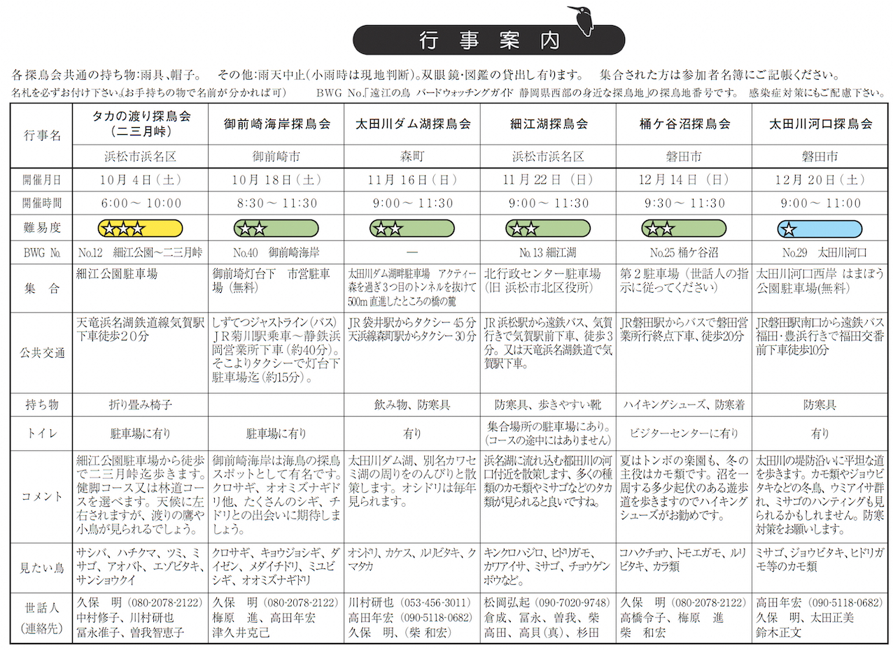 日本野鳥の会 遠江 行事予定 |