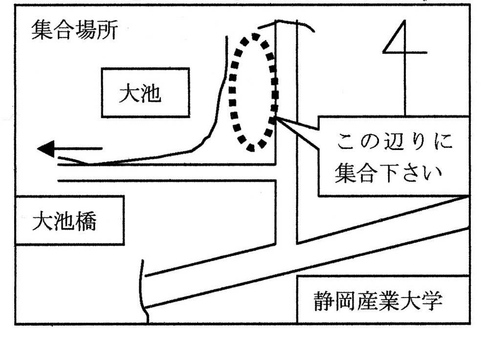 集合場所:大池東側の周遊路(昔桜並木のあったところ)なお駐車場は担当幹事が指示します。この指示にしたがって駐車して下さい。