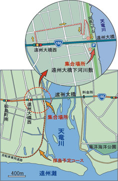 天竜川中流探鳥会(磐田市) - 終了 難易度 BWG No.7 天竜川中流 天竜川中流の探鳥会です。天竜川東岸沿いを歩いて、小鳥類や上空のアマツバメ類、猛禽類、川の水鳥やシギ、チドリを観察したいと思います。春のうららかな1日、ゆっくりと散策を楽しみましょう。 日時:4月19日(土)8:00〜11:00 集合:天竜川東岸(磐田側)かささぎ大橋下。昨年と変更になっていますので御注意下さい。 *鳥の出現状況などにより変更になる場合があります。変更の場合は上記集合場所にて担当世話人が案内します。 持ち物:双眼鏡、雨具など(双眼鏡の貸出しあり) その他:雨天中止。トイレはありません。 ------------------------------------------------------ 春の磐田大池探鳥会(磐田市) - 終了 難易度 磐田市にある大池は旅鳥の季節になるとシギ・チドリ類が渡来してきます。この大池で昨年同様に4月中旬に観察会を開催します。今回も外周の周遊路から観察をしたいと考えています(ほとんど移動しません)。短い間ですが春のシギ・チドリを楽しんでみませんか。