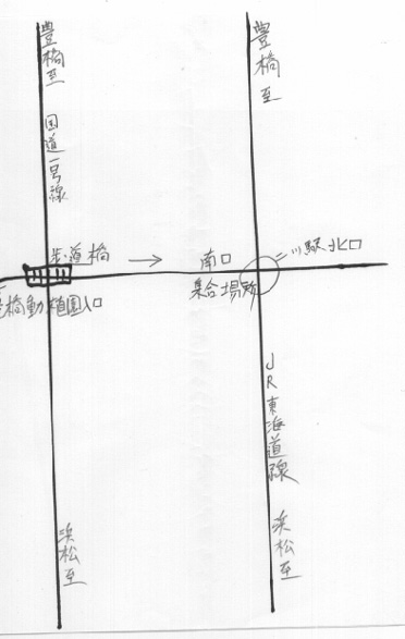 集合地:JR東海道線二川駅南口(下記地図参照)