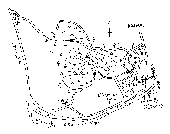 車では、国道1号線から太田川沿いに北へ入って100Mほどの左にビジターセンターの駐車場がある。遠鉄バスは「三ヶ野」下車、徒歩数分で駐車場。ビジターセンターにトイレがある。