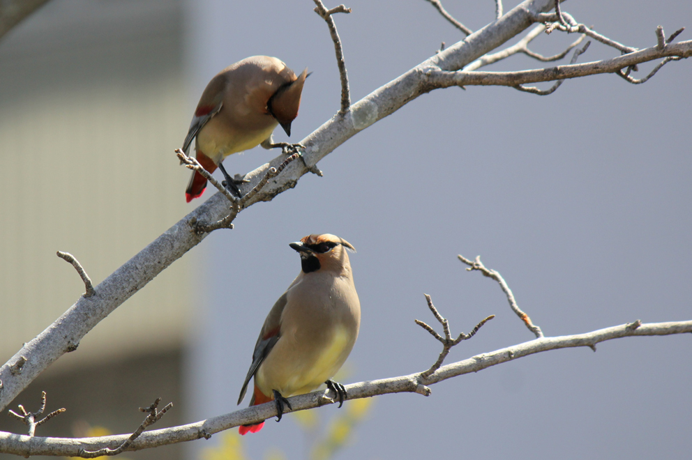 10 ヒレンジャク 2月の中旬から3月末、友人の庭に毎日10〜50羽が来ていました。 撮影; 秋山恵美子 2月 浜松市北区