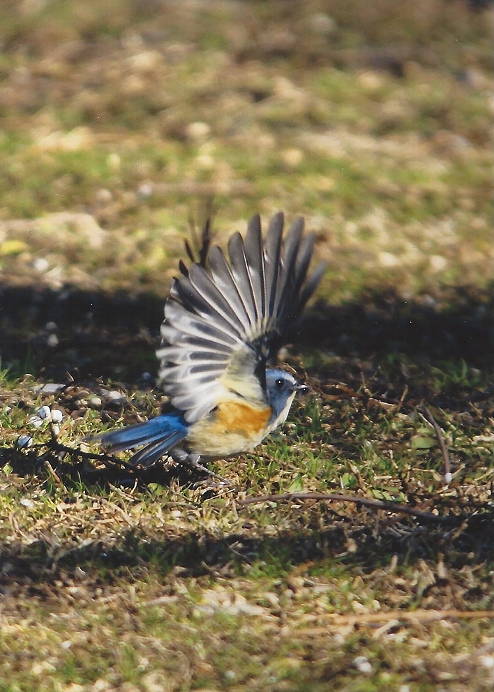 50 ルリビタキ ナンキンハゼの実を食べに下りた所を撮影。 撮影;馬淵留司 2月 県立森林公園