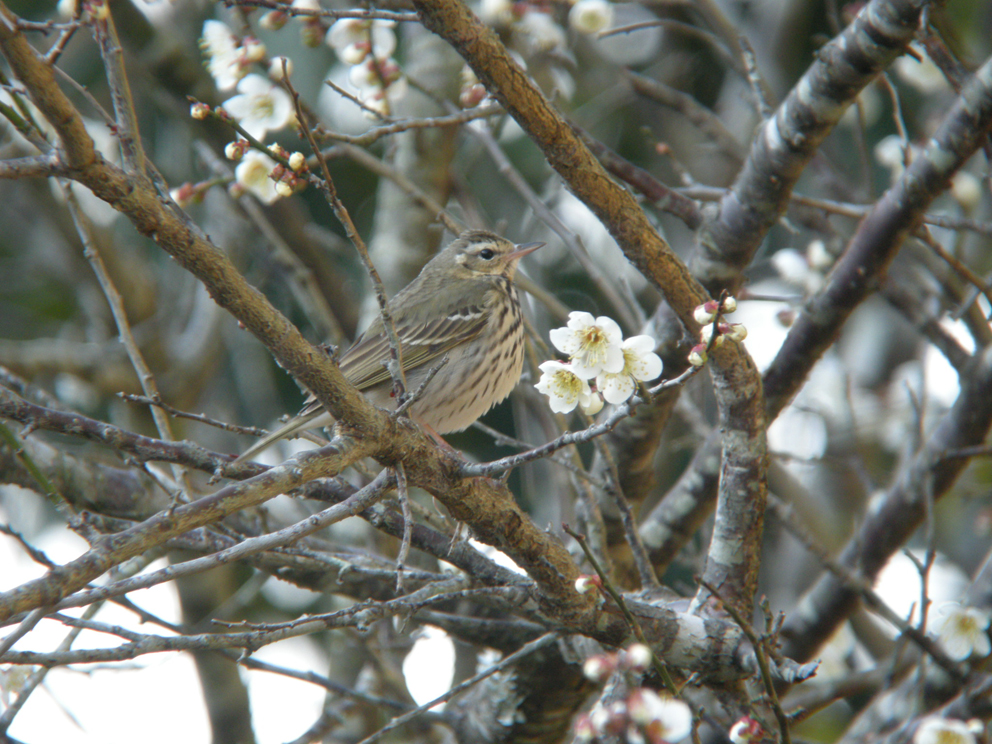 59 ビンズイ 梅にビンズイです。 撮影;杉浦泰男 2月 袋井市