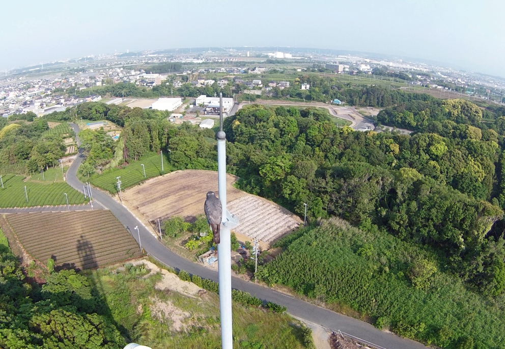 40 オオタカが視ている我が家 緑風薫る散策道。鉄塔見上げ微笑んでグルーリ3キロ丁度良い! 撮影; 大杉健二 5月 袋井市