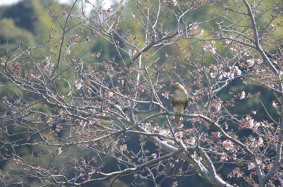 47 ノスリ 川べりのお花見で予期せぬ先客に出会えました。 撮影; 加藤律子 3月 浜松市神ヶ谷町