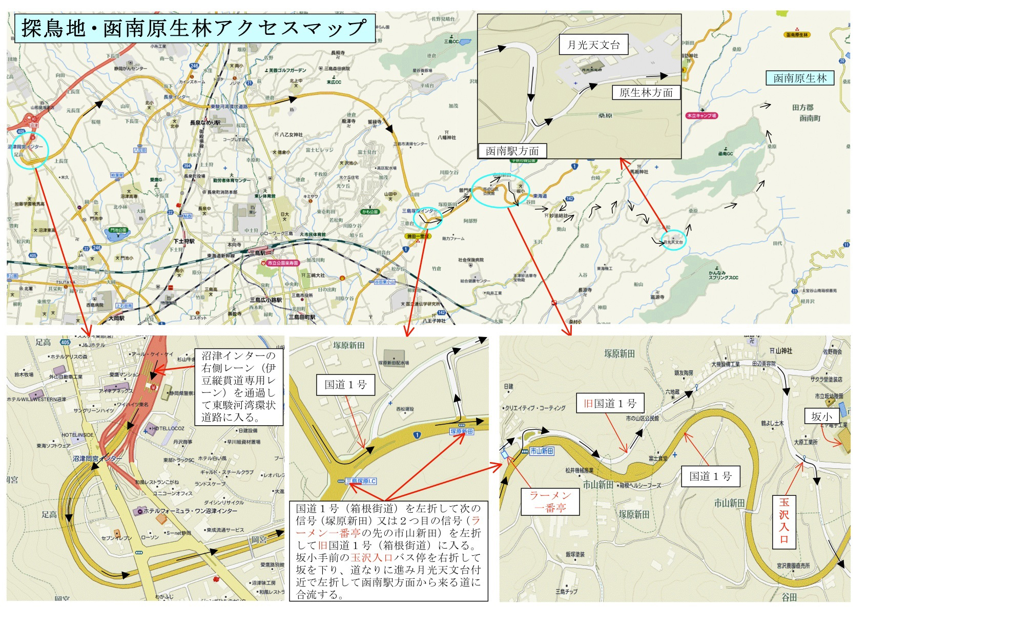 下見の結果により変更があることをご了承お願いします。函南原生林へのアクセスマップ 原生林コース