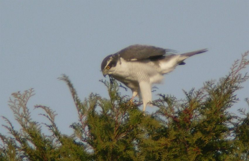 この後、何回もバランスを崩し、オオタカの精悍なイメージが壊れそうになりました。この木に止まる前も、カラスに追いかけられて(多分逃げて)いました。オオタカなんだから、もう少し強さを前面に出して欲しいものです。
