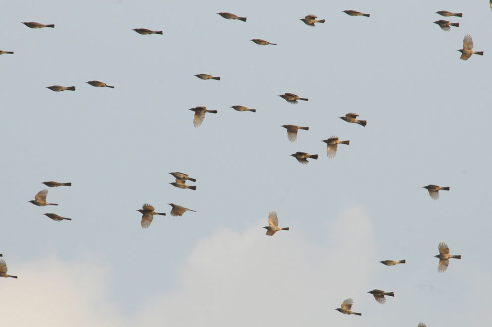 伊良湖岬探鳥会が開催されました。穏やかな秋晴れの中、タカの渡りを観察しました。サシバ、ハチクマが殆ど途切れることなく渡り、ノスリ、ツミ、ハヤブサのほか珍しいアカハラダカも確認されました。ヒヨドリは2,30羽から200羽程の群れになって数多く渡って行きました。