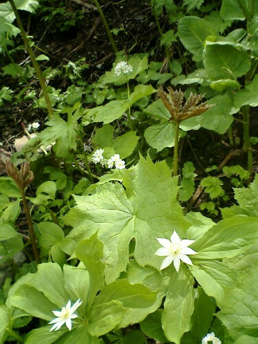 白馬岳探鳥会で認めた主な高山植物:イワオオギ、イワベンケイ、ウルップソウ、オオサクラソウ、キヌガサソウ、クロユリ、コマクサ、ショウジョウバカマ、シラネアオイ、シロウマアサツキ、シロウマタンポポ、ツクモグサ、ハクサンイチゲ、ベニバナイチゴ、ミヤマオダマキ等