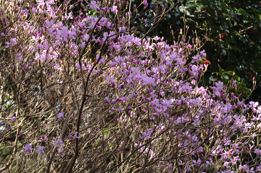 ウグイスカグラ・ショウジョウバカマ・ハルリンドウ・ミツバツツジ・シュンラン・ヤブツバキ・カタクリ・ヤマザクラ・ヒサカキ 等