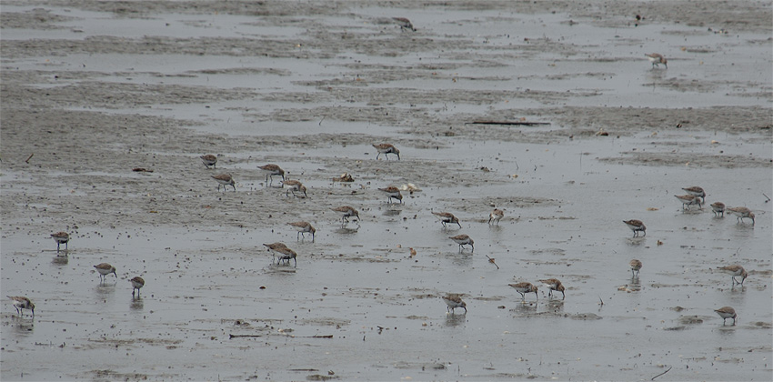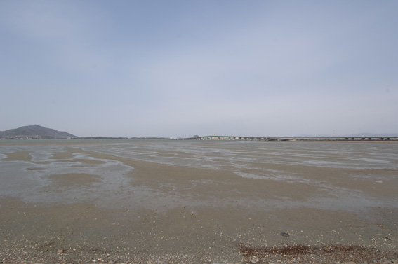 潮が引いた汐川干潟 後背地の養鰻池 ハマシギの群れ アオサギのコロニー 汐川探鳥会で認めた主な鳥