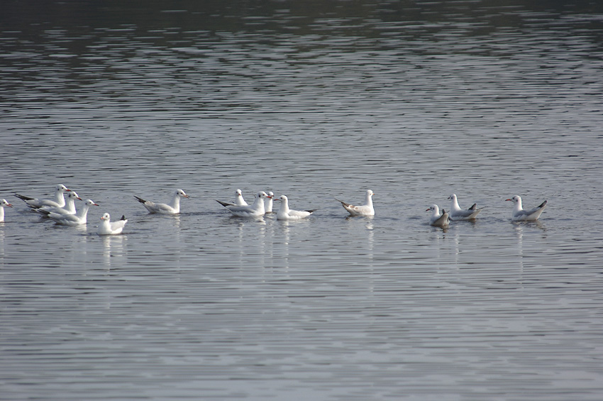 新年の佐鳴湖 沢山の会員等が今年初顔合わせ コガモ カワセミも出現 ユリカモメも多い シジュウカラ等の小鳥類もいます 佐鳴遊探鳥会で認めた主な鳥:カイツブリ、カンムリカイツブリ、カワウ、ダイサギ、コサギ、アオサギ、マガモ、カルガモ、コガモ、ヒドリガモ、ミコアイサ、ユリカモメ、トビ、オオバン、キジバト、カワセミ、コゲラ、ハクセキレイ、シロハラ、ツグミ、ウグイス、シジュウカラ、メジロ、ホオジロ、アオジ、カケス、スズメ等