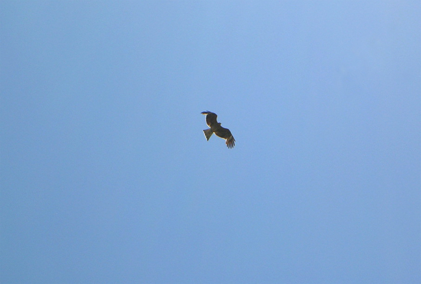 カモシカ館上空でトビが旋回。弁当の余りを狙っているらしい