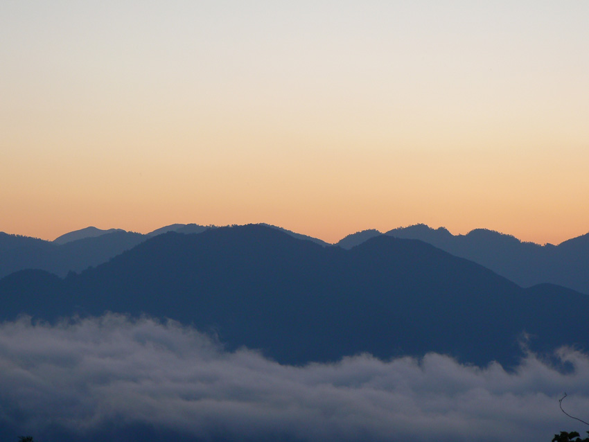 竜頭山避難小屋より日の出直前の山々 何の幼鳥でしょうか アサギマダラも出ました ホタルブクロ 幻想的な霧の中での朝食 竜頭山山頂2等三角点 天竜スーパー林道・竜頭山探鳥会で認めた主な鳥