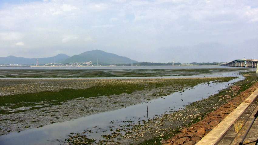 昨日迄の真夏のような暑さはなく、時々涼しい風が吹いてくる日和でした。サギ類に混じり、ホウロクシギ、ダイゼンを見たり湾と反対側の田圃や池も時々観察しました。池の上をツバメに混じり、ショウドウツバメが飛んでいるのを確認。貯木場では杭の上にミサゴがいつものように止まっていました。陸側ではカワセミのダイビングやゴイサギの幼鳥の飛翔を見ながら待っていると、次第にシギチドリ類が集まって来てその中に、今日一番期待したキリアイがいたのはラッキーでした。ソリハシシギ、エリマキシギ等も見ることができました。