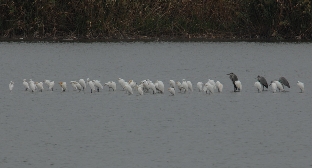秋の大池 シギ類をチェック すっかりお馴染みになったセイタカシギ(幼鳥) サギ類が勢ぞろい 磐田大池探鳥会で認めた主な鳥