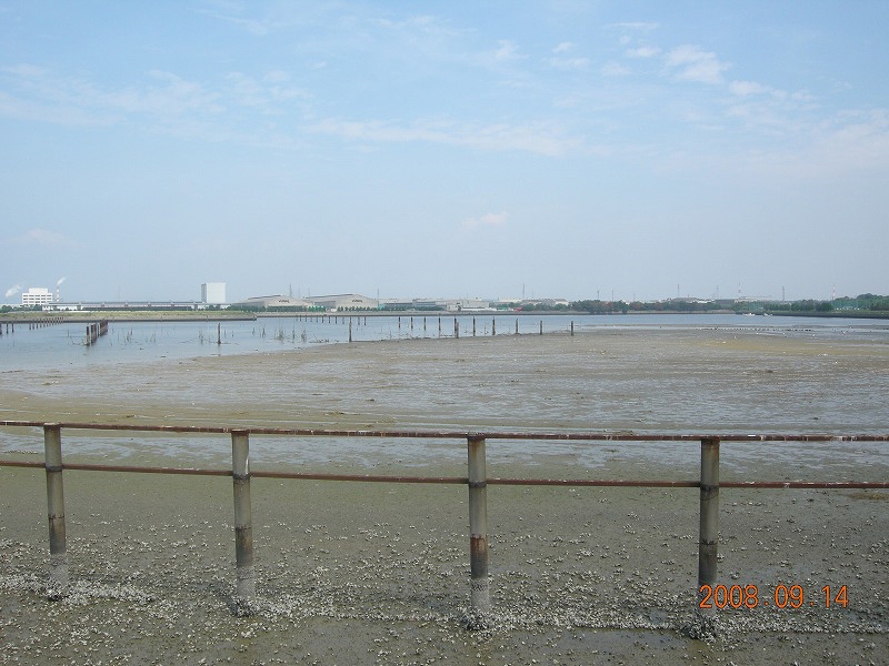 干潮の汐川干潟 汐川干潟の堤防を探鳥 汐川干潟で認めた鳥 :コチドリ、ハジロコチドリ、メダイチドリ、ダイゼン、ケリ、トウネン、ハマシギ、アオアシシギ、キアシシギ、オバシギ、クサシギ、イソシギ、ソリハシシギ、オオソリハシシギ、タシギ等45種