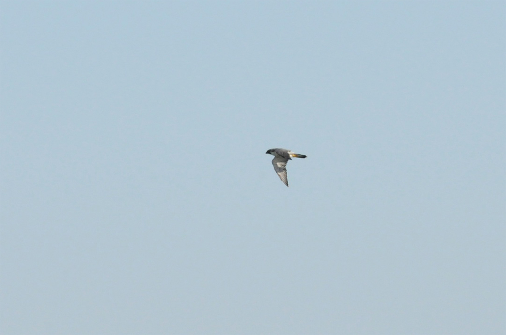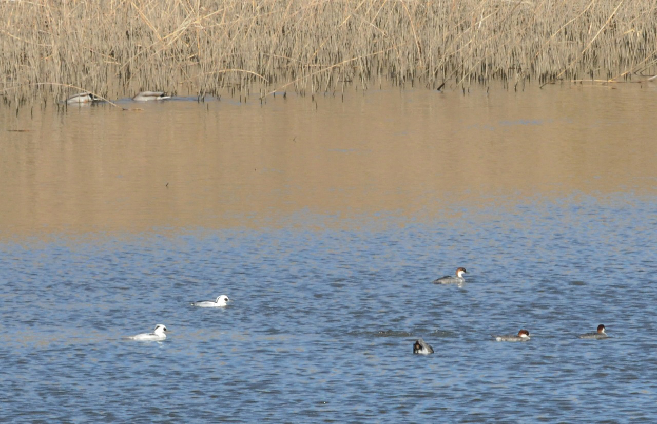 未明までの大雨は上がったものの冷たい西風が吹きつけ、更に大池対岸がかすんで見えるくらいの黄砂の中での探鳥会でした。また大雨の影響で増水していて干潟は水没状態、期待したシギ・チドリの姿はなく、普通種のみの探鳥会でした。
