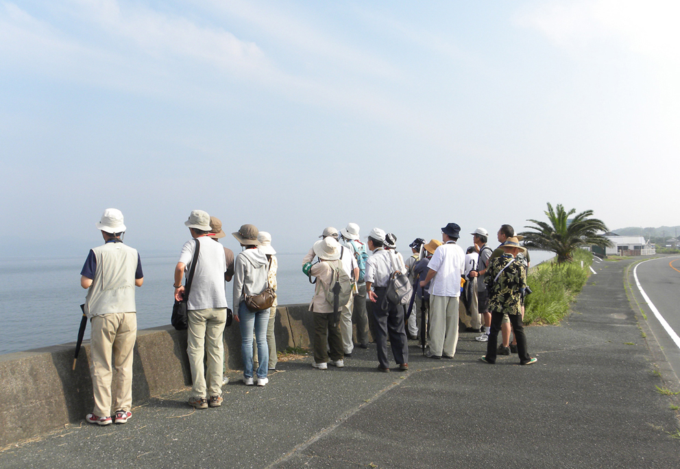 初めての村櫛海岸探鳥会、猛暑にもかかわらず大勢の参加をいただき、念願のアオバトが見られました。