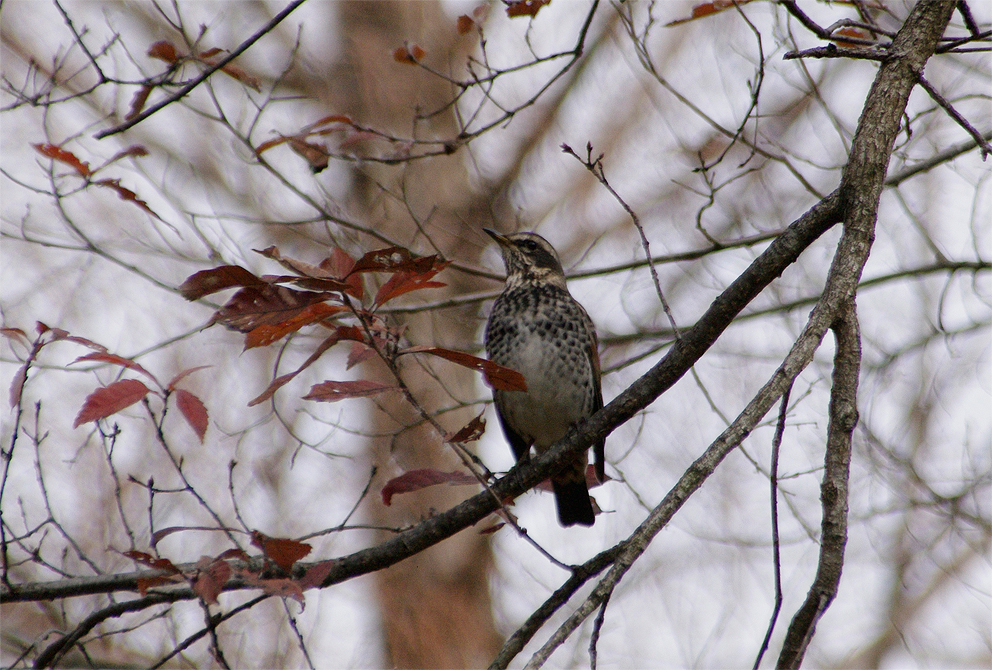 お正月の佐鳴湖で探鳥 静かなお正月の佐鳴湖 カモ達もお休み中 ツグミ 佐鳴遊探鳥会で認めた主な鳥:カイツブリ、カンムリカイツブリ、ハジロカイツブリ、カワアイサ、ミコアイサ、カワウ、アオサギ、マガモ、カルガモ、コガモ、、ヒドリガモ、ユリカモメ、ミサゴ、カワセミ、ハクセキレイ、セグロセキレイ、モズ、ツグミ、シロハラ、ウグイス、ジョウビタキ、ルリビタキ、シジュウカラ、メジロ、マヒワ、アオジ、カワラヒワ等