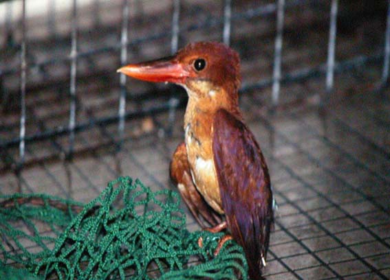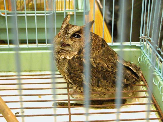 目の障害で保護されたオオコノハズク 保護されたアカショウビン-スライドより