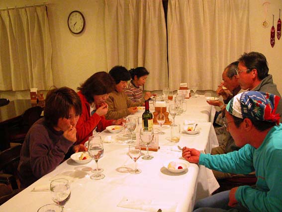武尊の山が美しい アカゲラ-アオゲラやコゲラ等も多い コガラ-カラ類も多い スノーシューやネイチャースキーを履いてブナ林を探鳥する参加者達 ペンションの豪華ディナーを堪能する参加者達 玉原高原スノー探鳥会で認めた主な鳥