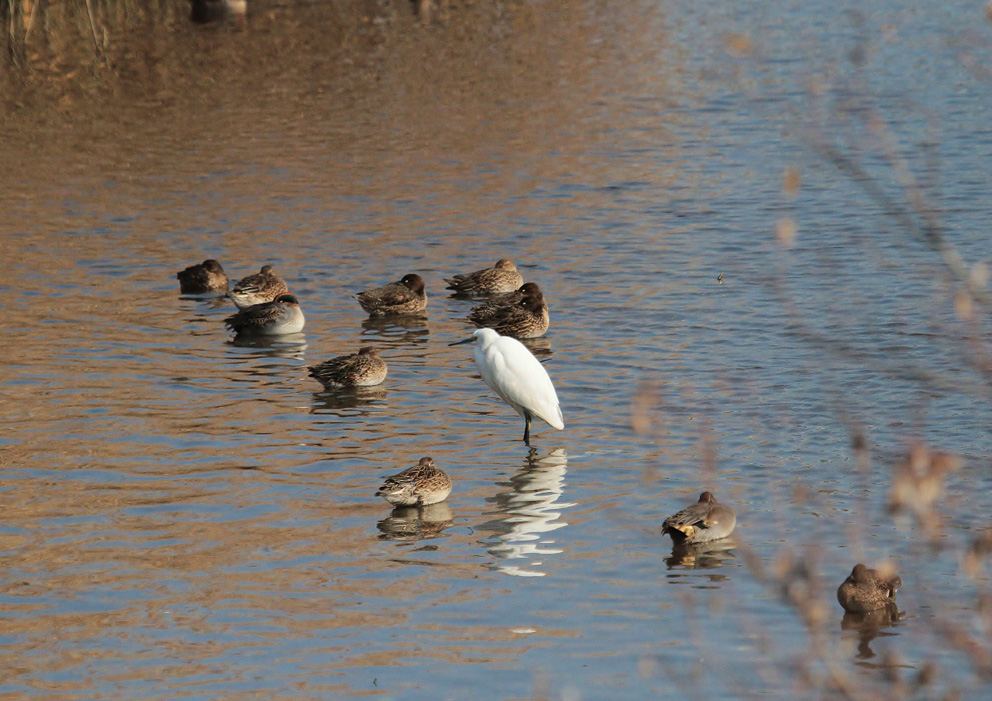 コガモやコサギもゆったりと休息