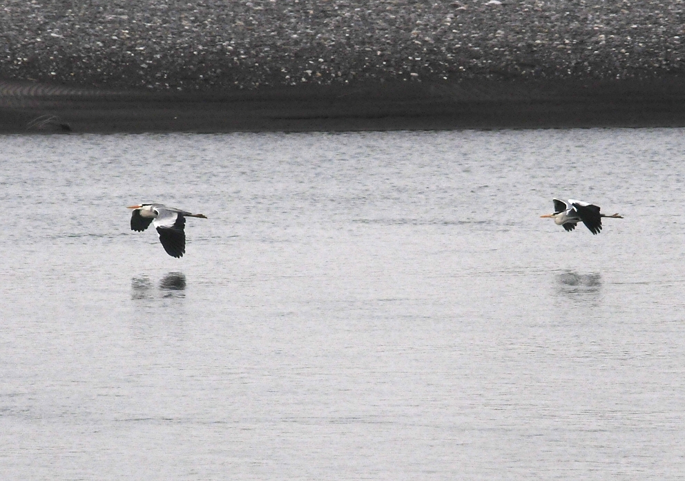 天竜川上空をカワウが飛ぶ