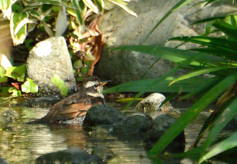 ツグミも水浴び