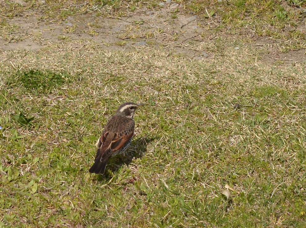 公園の芝生にはハクセキレイ かぶと塚公園公園探鳥会で認めた主な鳥:カワウ、アオサギ、トビ、ハクセキレイ、セグロセキレイ、モズ、シロハラ,ツグミ、エナガ、シジュウカラ、カワラヒワ、シメ など ------------------------------------------------------ 2014.3.2 つつじ公園公園探鳥会が開催されました。 小雨の中の探鳥会となりましたが、しっとりと濡れた静かな公園で、芽吹き前の小枝でカワラヒワやメジロ、落ち葉が残る地面では数羽のビンズイやシロハラが歓迎してくれました。 小雨にも負けず観察