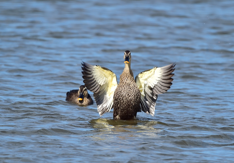 ヒヨドリも飛ぶ 二三月峠探鳥会で認めた主な鳥:ミサゴ、オオタカ、ノスリ、サシバ、アオバト、ヒメアマツバメ、アオゲラ、アカゲラ、コゲラ、イワツバメ、ビンズイ、モズ、イソヒヨドリ、エゾビタキ、エナガ,ヤマガラ、シジュウカラ、メジロ、ホオジロ、カケス など ---------------------------------------------------------- 2014.9.27 磐田大池探鳥会が開催されました。 秋晴れの中を大池の堤防に沿って探鳥して回りました。池の水が多く、西側のアシ原沿いの少しできた干潟に、セイタカシギやコガモの群れが休んでいた。ダイサギの群れが、澄み切った青空をゆったりと舞ってくれたのが印象的だった。
