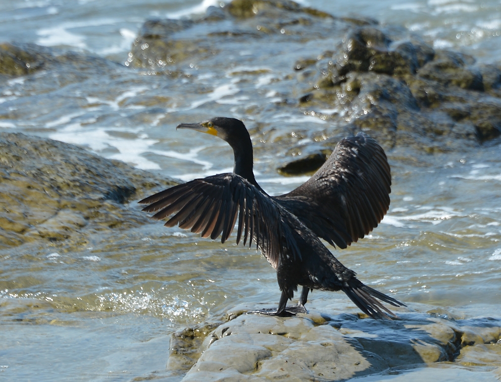 カワウ 御前崎探鳥会で確認された鳥:カワウ、アオサギ、コチドリ、メダイチドリ、ダイゼン、トウネン、ミユビシギ、キアシシギ、チュウシャクシギ、ウミネコ、アオバト、アマツバメ、コゲラ、ツバメ、ハクセキレイ、イソヒヨドリ、シジュウカラ、ホオジロ等。