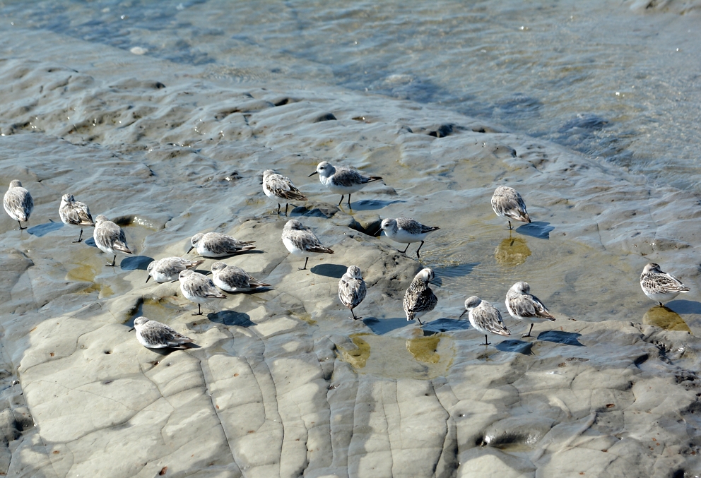 キセキレイ 飯田公園探鳥会で認めた主な鳥:ゴイサギ、ダイサギ、アオサギ、カワセミ、コゲラ、キセキレイ、ハクセキレイ、セグロセキレイ、モズ、センダイムシクイ、キビタキ、コサメビタキ、ヤマガラ、シジュウカラ、メジロ 、ホオジロ、カワラヒワなど ---------------------------------------------------------- 2014.9.14 御前崎海岸探鳥会(御前崎市)が開催されました。 晴天に恵まれた初秋の御前崎海岸探鳥会、旅鳥のミユビシギ、チュウシャクシギ、メダイチドリ等が可憐な姿を見せてくれました。またアオバトの歓迎で参加者の歓声がひときわでした。 晴天の海岸で探鳥