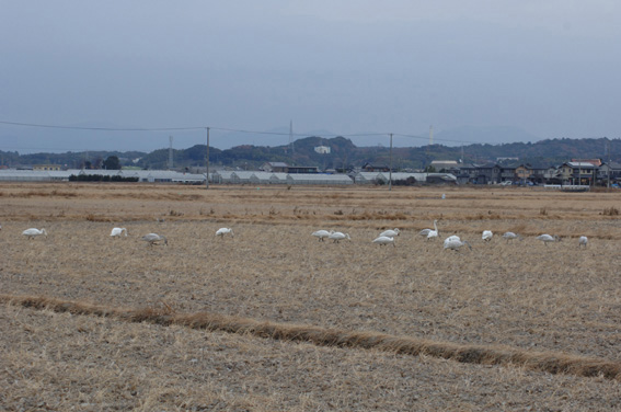 2006.1.1 (静岡県・袋井市)コハクチョウ21羽-畑で餌を食べていた。