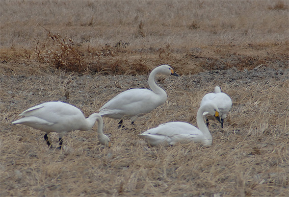 2006.1.8 (静岡県・袋井市) コハクチョウ32羽、オオハクチョウ4羽、ミヤマガラス300+
