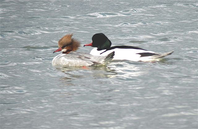 2006.1.13 (静岡県・磐田市)磐田市大池 ミコアイサ♂2羽、♀3羽-久々に大池を訪ねたらミコアイサを発見。