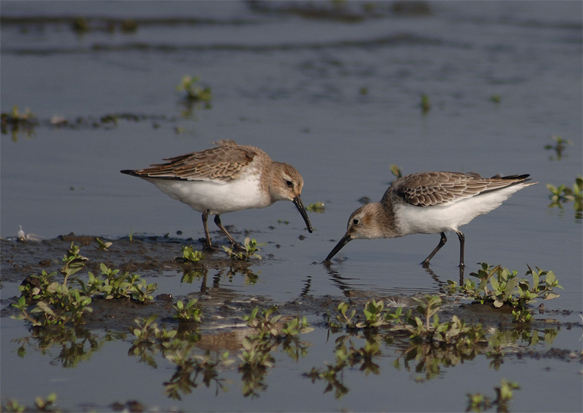 2006.8.18(静岡県・袋井市) ソリハシシギ、シロチドリ、コチドリ、ムナグロ、アマサギ、コサギ 他-水を張った田んぼにシギ・チドリ類が毎日やってきます。