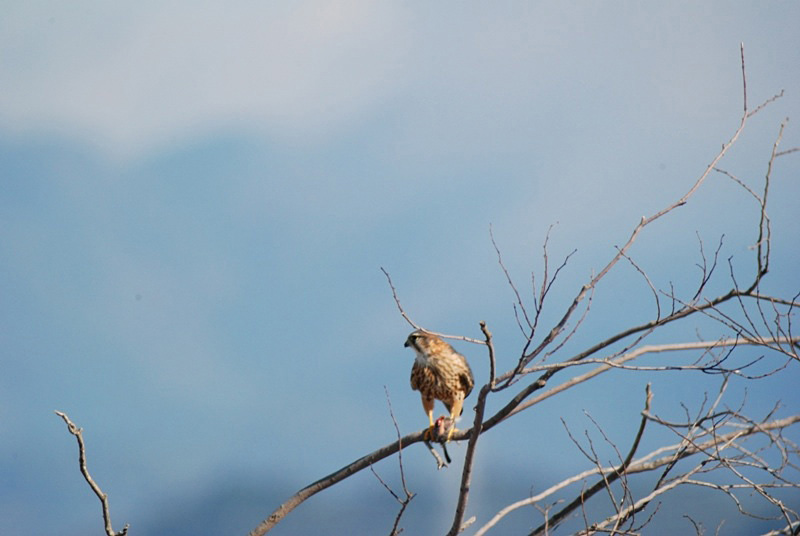 2009.11.23 (静岡県)天竜川 コチョウゲンボウ - 観察中に小鳥をゲット食べ始めました。