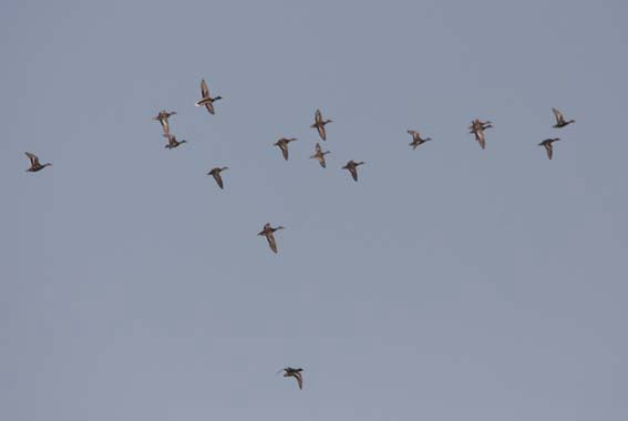 2009.10.23 (静岡県・袋井市) 小笠沢川 コガモ10、カルガモ5、ヒクイナ2、モズ、コゲラ等 - 朝の散歩も肌寒くなりカモが増えてきました。