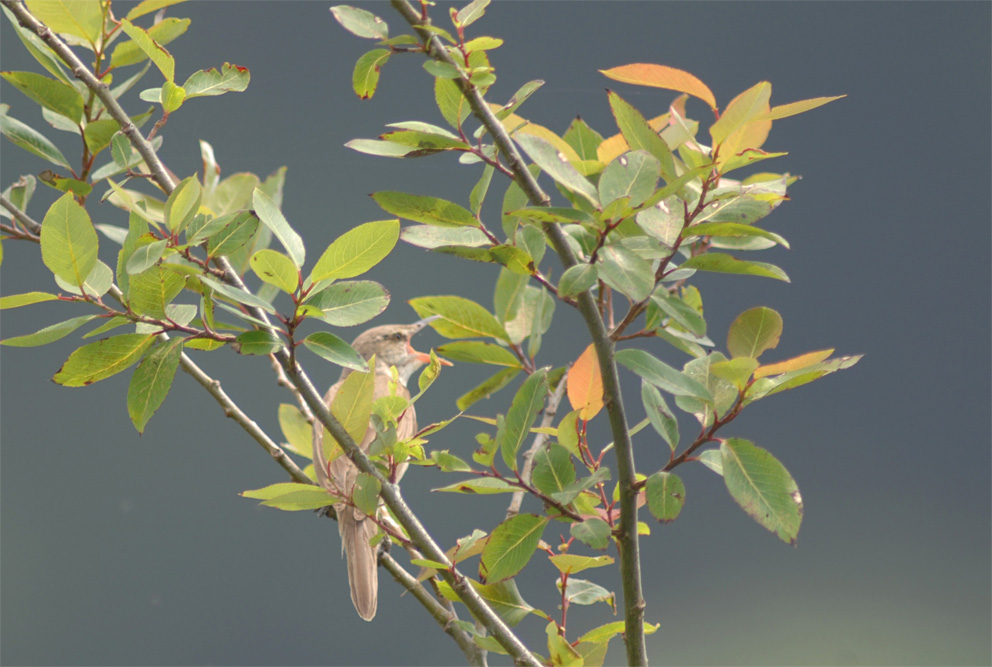 2009.5.4(静岡県・浜松市・北区) 引佐町奥山 エゾムシクイ(さえずり) - 多くの小鳥たちがさえずる中、ひときわ金属的で直線的な声が目立っていました。