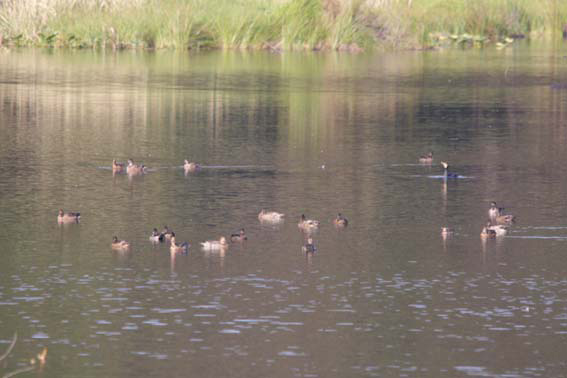 2009.10.23(静岡県・磐田市)鶴ヶ池 カイツブリ、ヒドリガモ、マガモ、コガモ - 鶴ヶ池に活気が戻ってきました。ヒドリガモ、マガモ、コガモが数十羽到来していました。マガモの雄には立派に冬羽になっているものも居ました。その他、カイツブリが幼鳥2羽をつれ泳いでいました。