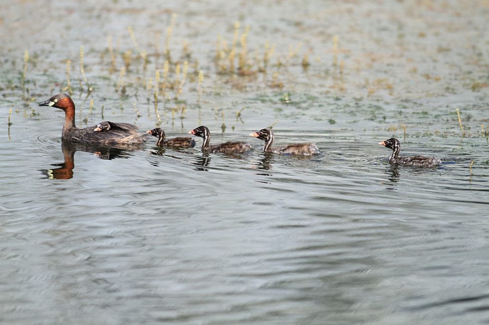 2011.8.9 (静岡県・浜松市)浜名湖ガーデンパーク カイツブリ、バン、ホオジロ、メジロ、トビ他 - 2番子の雛も大分大きくなりました、親に負けじと泳ぎ回っていました。