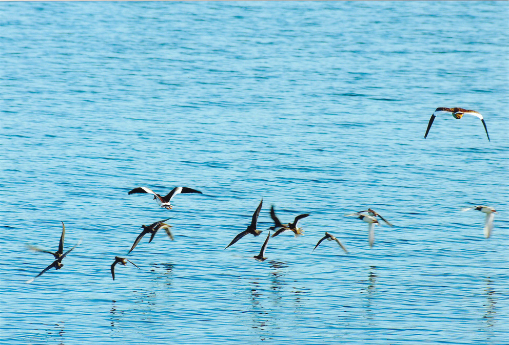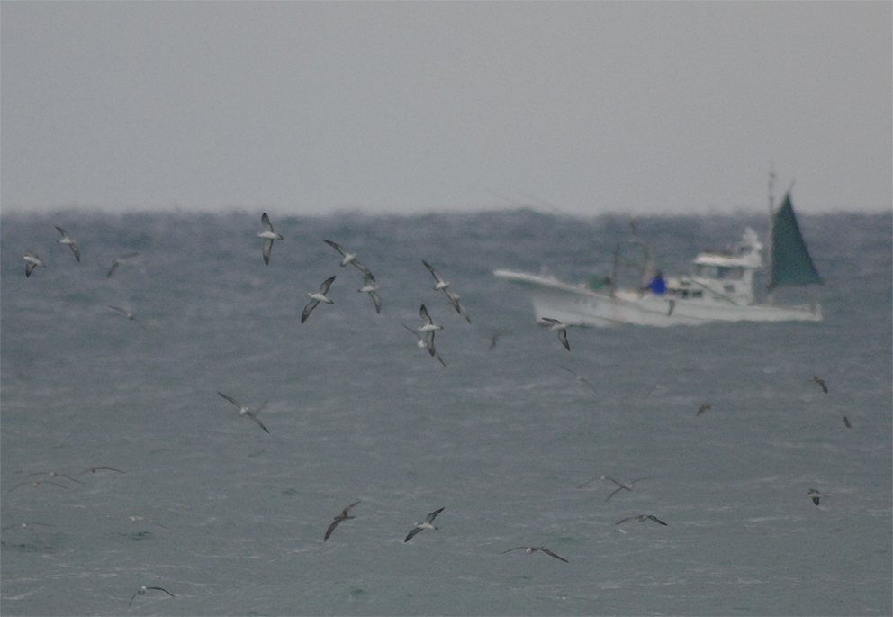 2011.9.23 (静岡県・御前崎市)御前崎海岸 オオミズナギドリ、クロサギ、メダイチドリ、トウネン、ダイゼン、シロチドリ、ミユビシギ、イソシギ、チュウシャクシギ、イソヒヨドリ など - オオミズナギドリが近くで乱舞していました。クロサギは2羽。