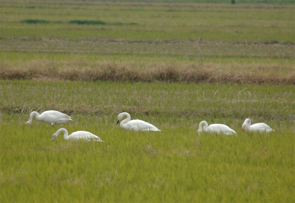 2011.11.28 (静岡県・袋井市)西田 コハクチョウ5 - 鶴ケ池のコハクチョウと思われる5羽が採餌していました。