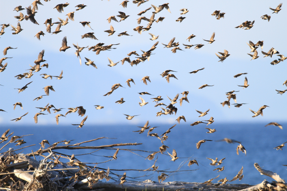 2011.7.14(静岡県・掛川市) 御前崎海岸 ムクドリ・・夕方海岸の砂浜でのムクドリの大群は圧巻でした。