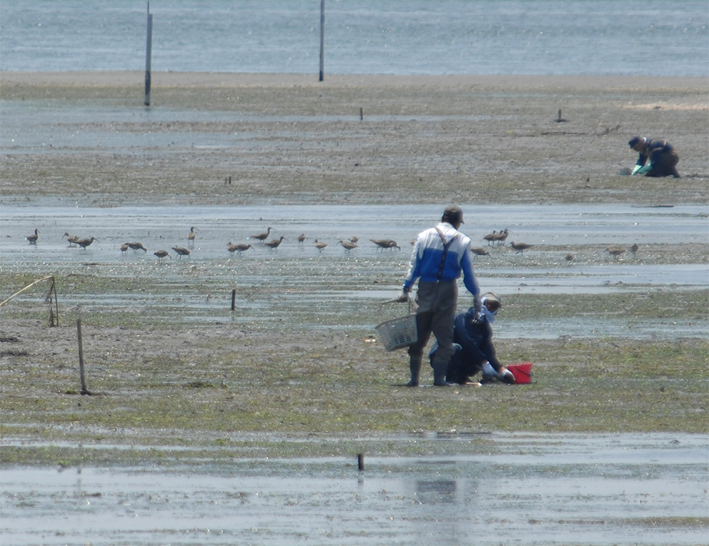 2011.5.18 (静岡県・浜松市・湖西市)弁天島 コチドリ、チュウシャクシギ、オオソリハシシギ、キョウジョシギ、ダイゼン、アオアシシギ、キアシシギ、コアジサシ、 - チュウシャクシギは120羽以上、アサリ採りの人たちと一緒に餌をとっていました。